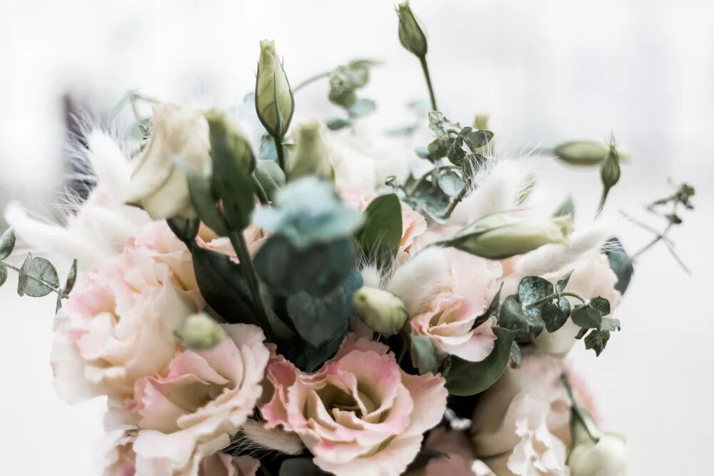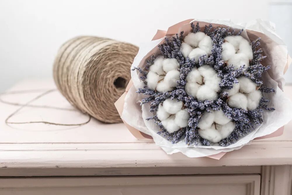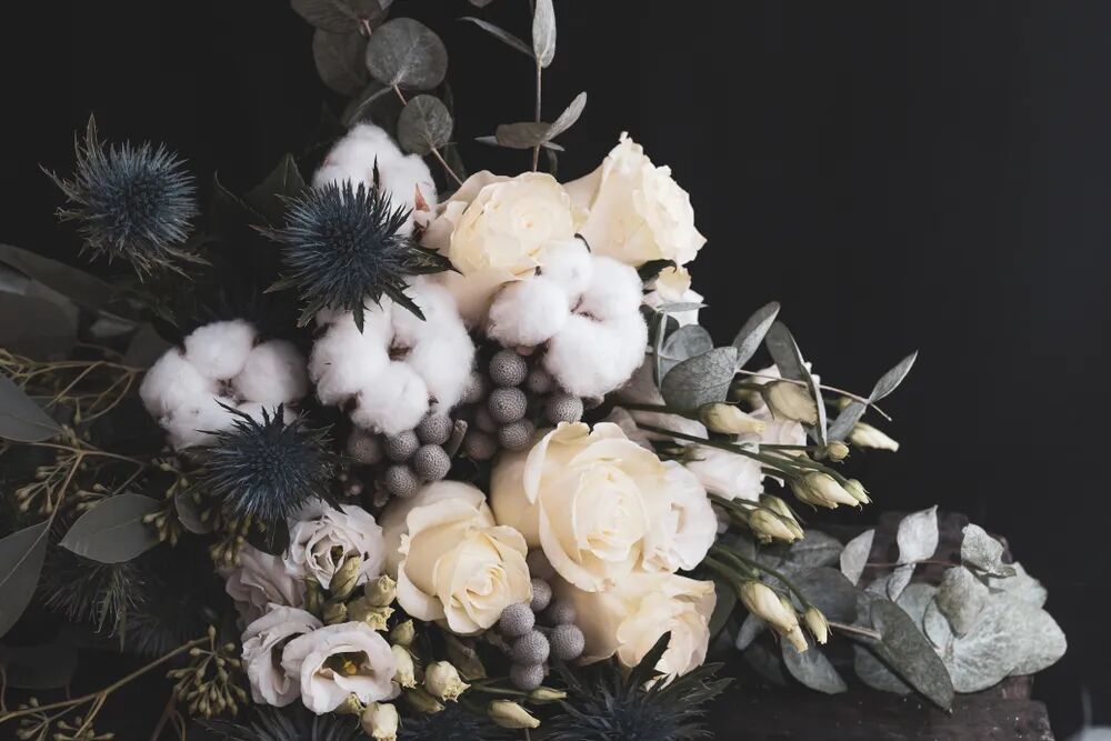 除了鲜花与绿叶,多样材质的混搭理念也被运用到了花束的装饰搭配中。棉花、麦穗这类风干植株是最被广泛利用的材质,除此之外,羽毛的轻柔、飘逸更能承托出花朵的娇艳欲滴,因此也成为广受欢迎的装饰素材。