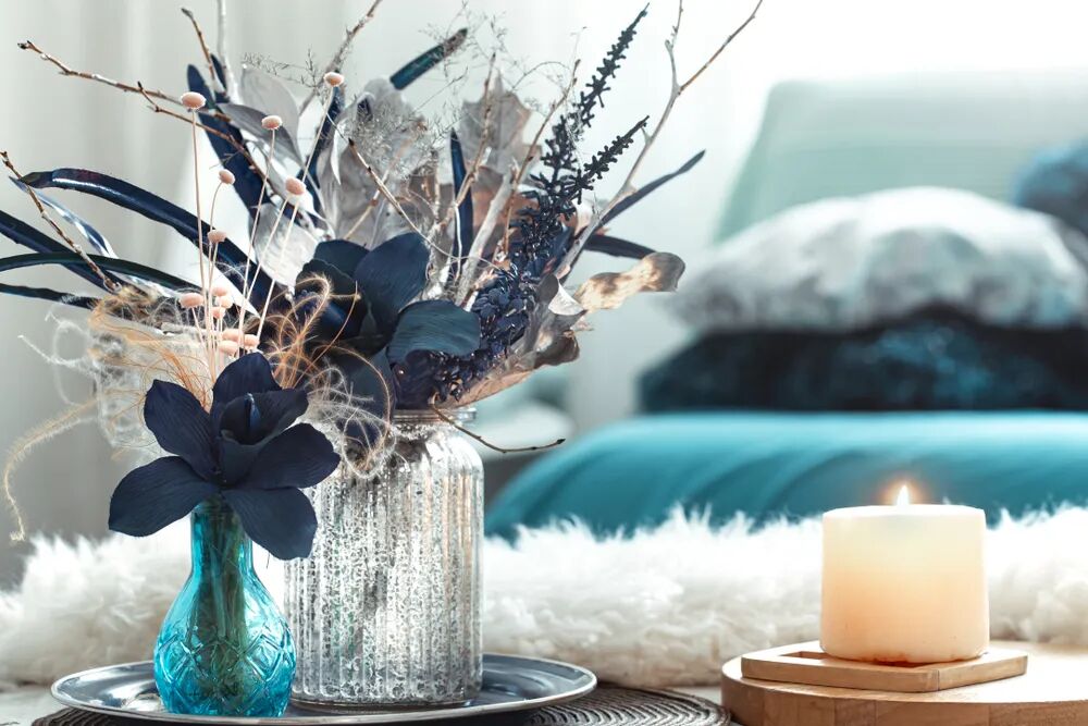 客厅茶几上适宜摆放清雅淡丽的大束花朵,餐厅则可选一只剔透的玻璃瓶,插几株当季的鲜花,卧室、书房切忌不要选择香味、色彩太过浓烈的品种,不妨尝试利用棉花、干枝的搭配,保存时间更久,也不易造成对睡眠的打扰。